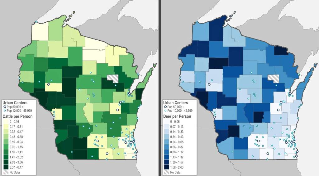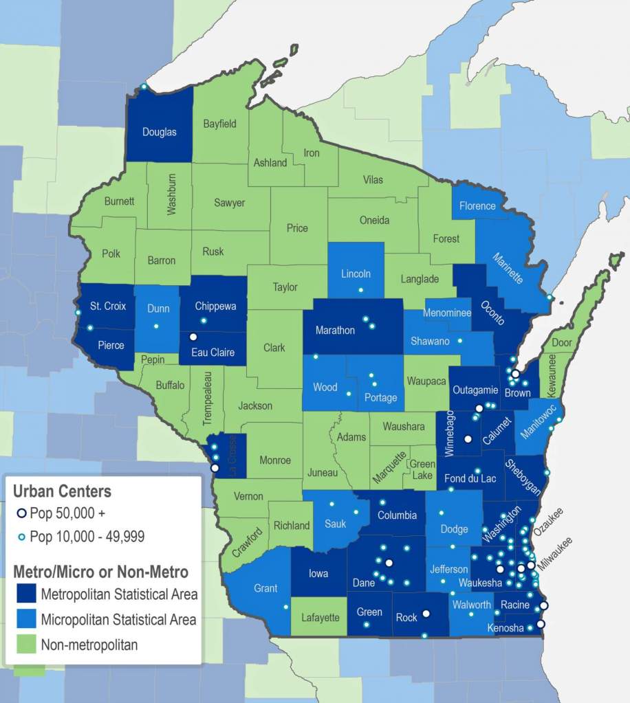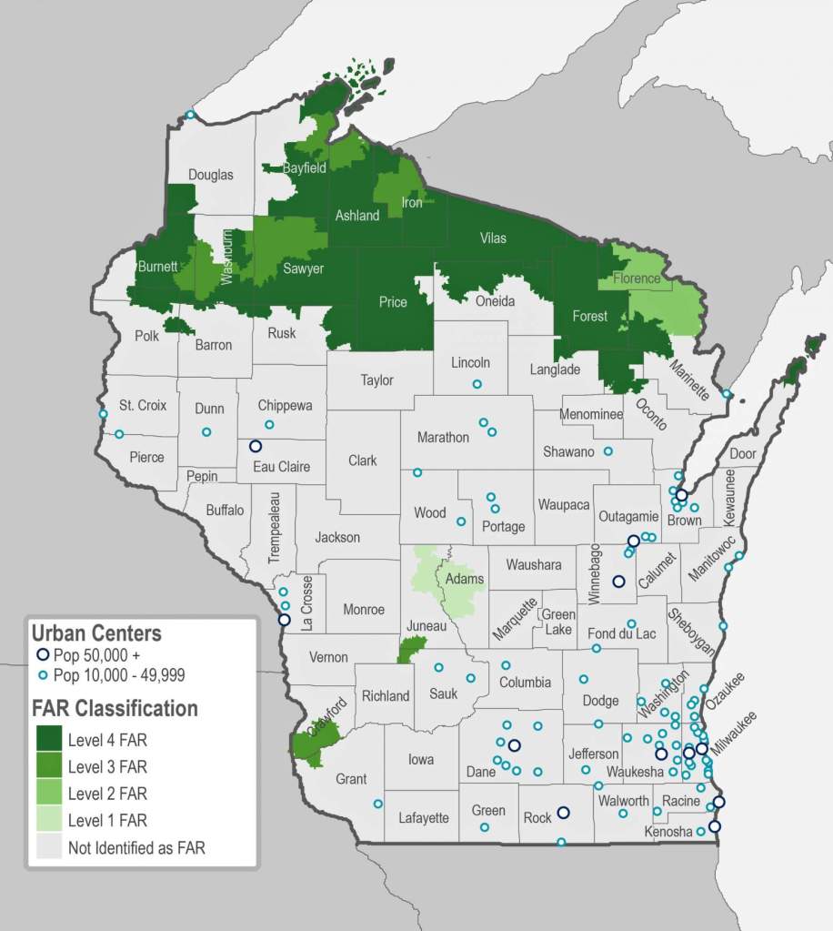 Rural is a state of mind just as much as it is a place. These maps, created by Caitlin Bourbeau at University of Wisconsin’s Applied Population, illustrate some aspects of what can be considered “rural.” Whether it is the Census designations, land use, or people and animal population densities, the definition of “rural” can be quite varied. Residents of “rural” areas have needs just as diverse as these definitions and Rural Wisconsin Inc. aims to represent all the concerns of Wisconsin’s rural residents.